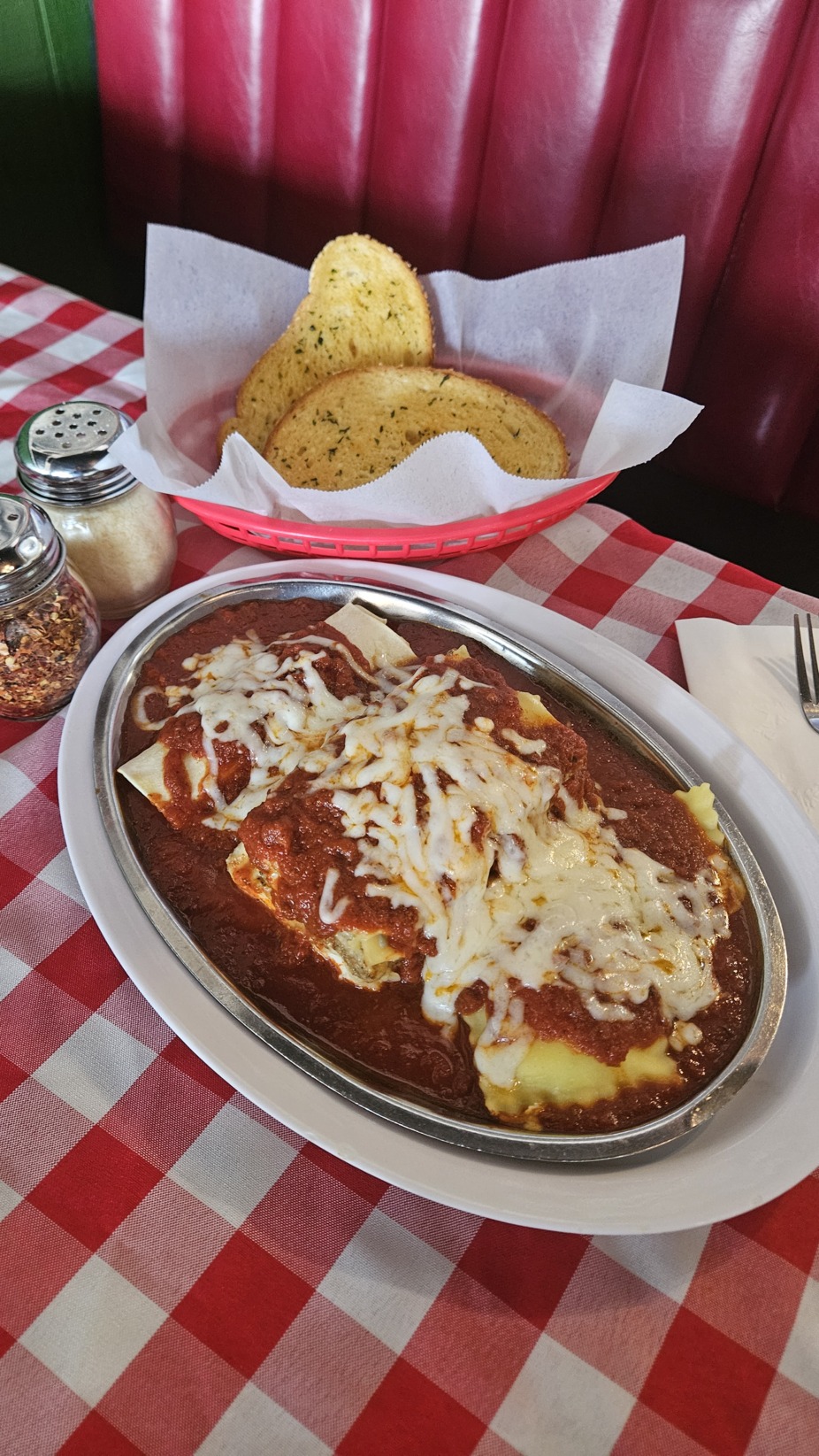 Enjoy a sampler platter of baked cheese manicotti, Beef or Spinach Lasagna and Cheese ravioli baked with mozzarella cheese in your choice of Marinara or Meat Sauce.